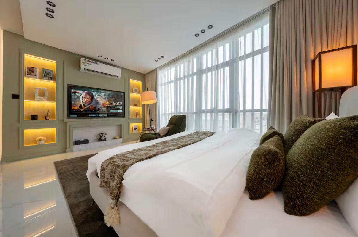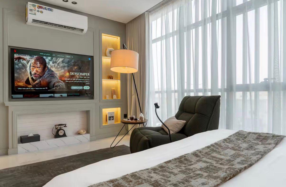 يضم الاستوديو سريرًا ومنطقة جلوس جانبية يمكنك الاستمتاع فيها بالمشاهدة على شاشة ذكية مقاس 65 بوصة. كما يوجد مطبخ صغير منفصل، وركن قهوة لتلبية جميع احتياجاتك، ومنطقة خارجية أنيقة مزودة بموقد نار. الموقع قريب من جميع الخدمات والمعالم السياحية ومناطق موسم الرياض (البوليفارد، الأرينا، وغيرها) خلال 5 دقائق فقط