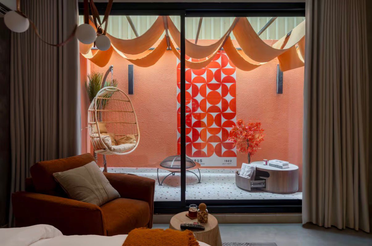 يضم الاستوديو سريرًا ومنطقة جلوس جانبية يمكنك الاستمتاع فيها بالمشاهدة على شاشة ذكية مقاس 65 بوصة. كما يوجد مطبخ صغير منفصل، وركن قهوة لتلبية جميع احتياجاتك، ومنطقة خارجية أنيقة مزودة بموقد نار. الموقع قريب من جميع الخدمات والمعالم السياحية ومناطق موسم الرياض (البوليفارد، الأرينا، وغيرها) خلال 5 دقائق فقط
